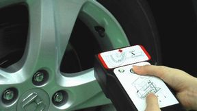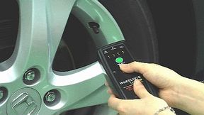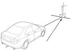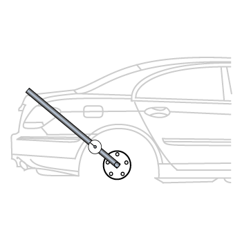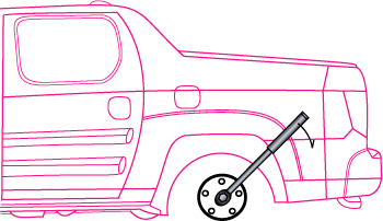 - Jack up the car and place the four wheels gently in the center of the turning radius gauge turntables.