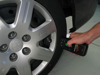 - Install the toe inspection gauge (07HGJ-0010000) on the wheels.